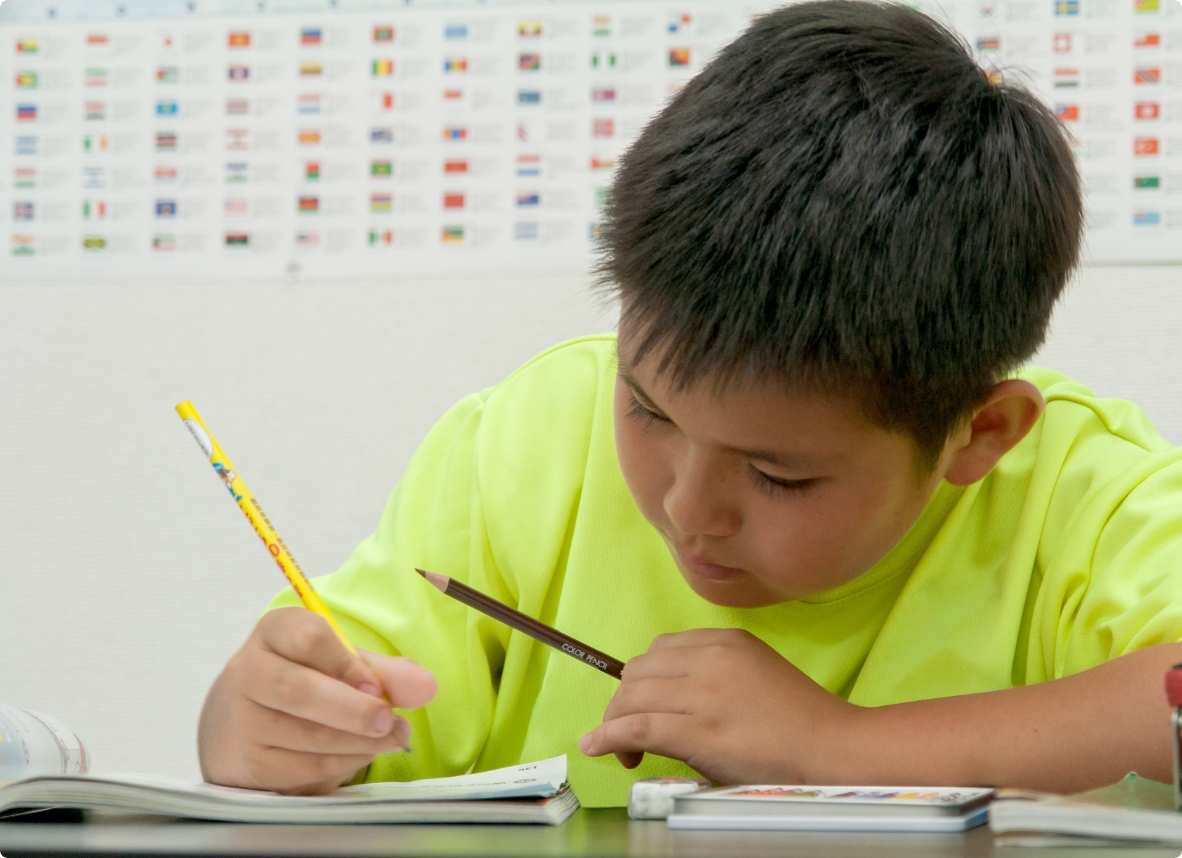 先生やお友だちとの英会話を通して「英語で伝えたい」という気持ちをまずは育みます。それに加えて、「聞く」「話す」「読む」「書く」といった4技能もバランスよく学習することで、小学校以降も「使える」英語を身につけていきます。