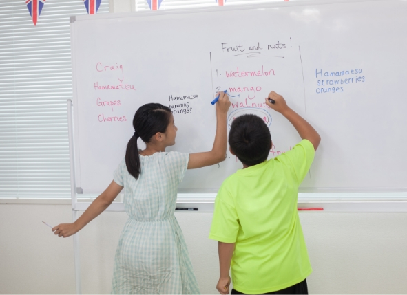 当スクールでは、イギリス人プロ講師によるレッスンの中で、間違ってもいても臆さず自分の思いや考えを英語で伝える経験を積み重ね、「英語でやりとりするって楽しい!」という気持ちをはぐくみます。