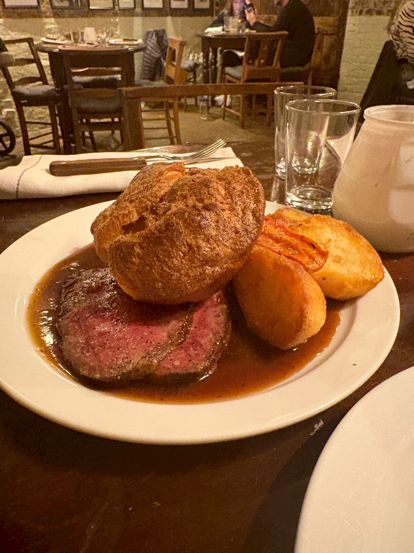 ![]() イギリスの伝統的な日曜日のご馳走「サンデーロースト」をパブにて |